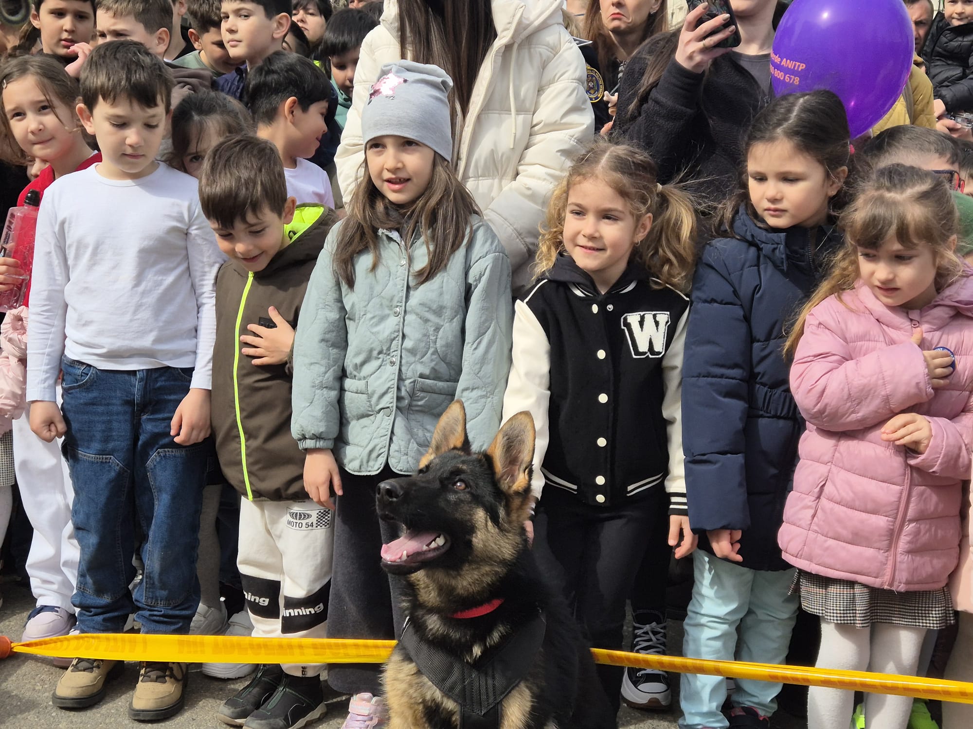 Un moment deosebit a fost demonstrația de dresaj canin, unde echipele mixte de polițist și câine au captivat atenția copiilor, oferind un spectacol impresionant.